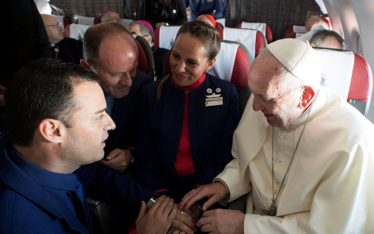 Összeadott egy párt Ferenc pápa az őt szállító repülőgép fedélzetén