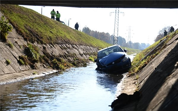 Személygépkocsi a Rákos-patakban, miután a jármű egy másik autóval ütközött a Füredi utca és a Gvadányi utca kereszteződésében, majd a vízbe zuhant 2021. október 30-án. A balesetben ketten megsérültek.